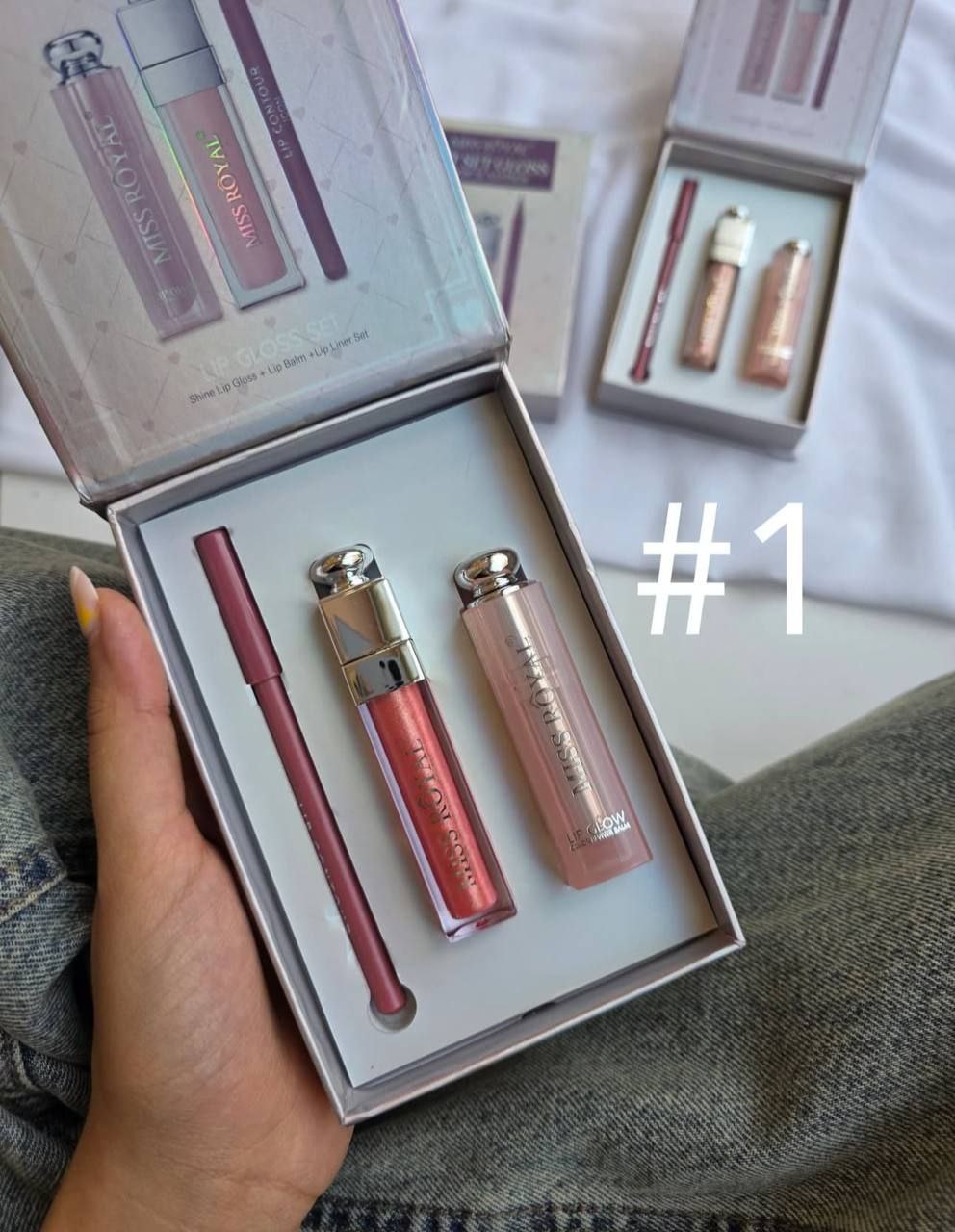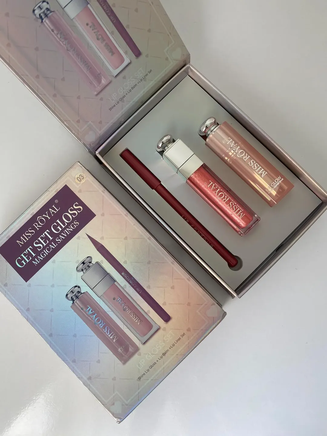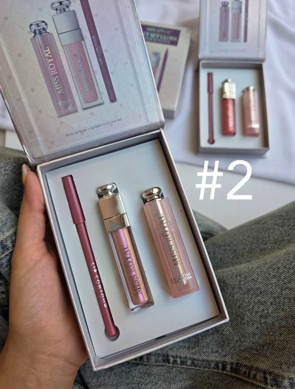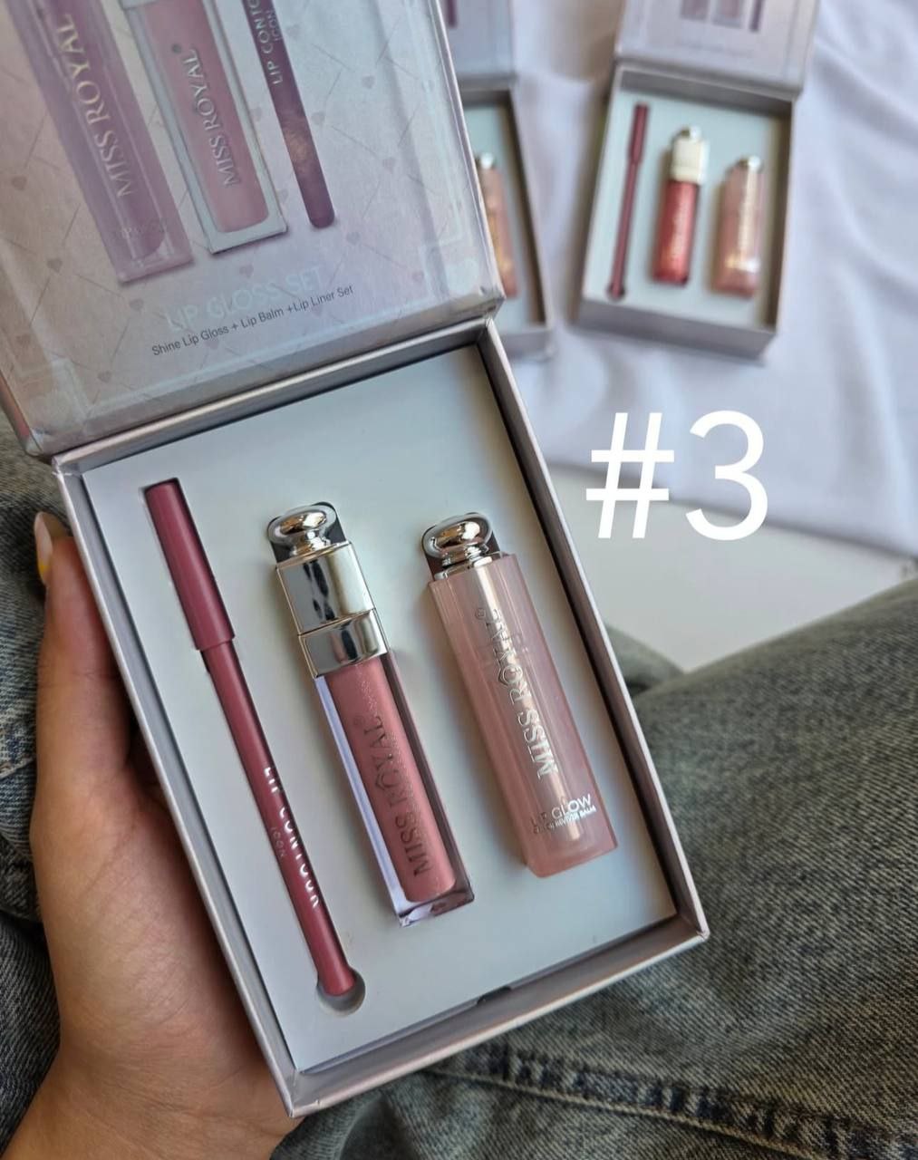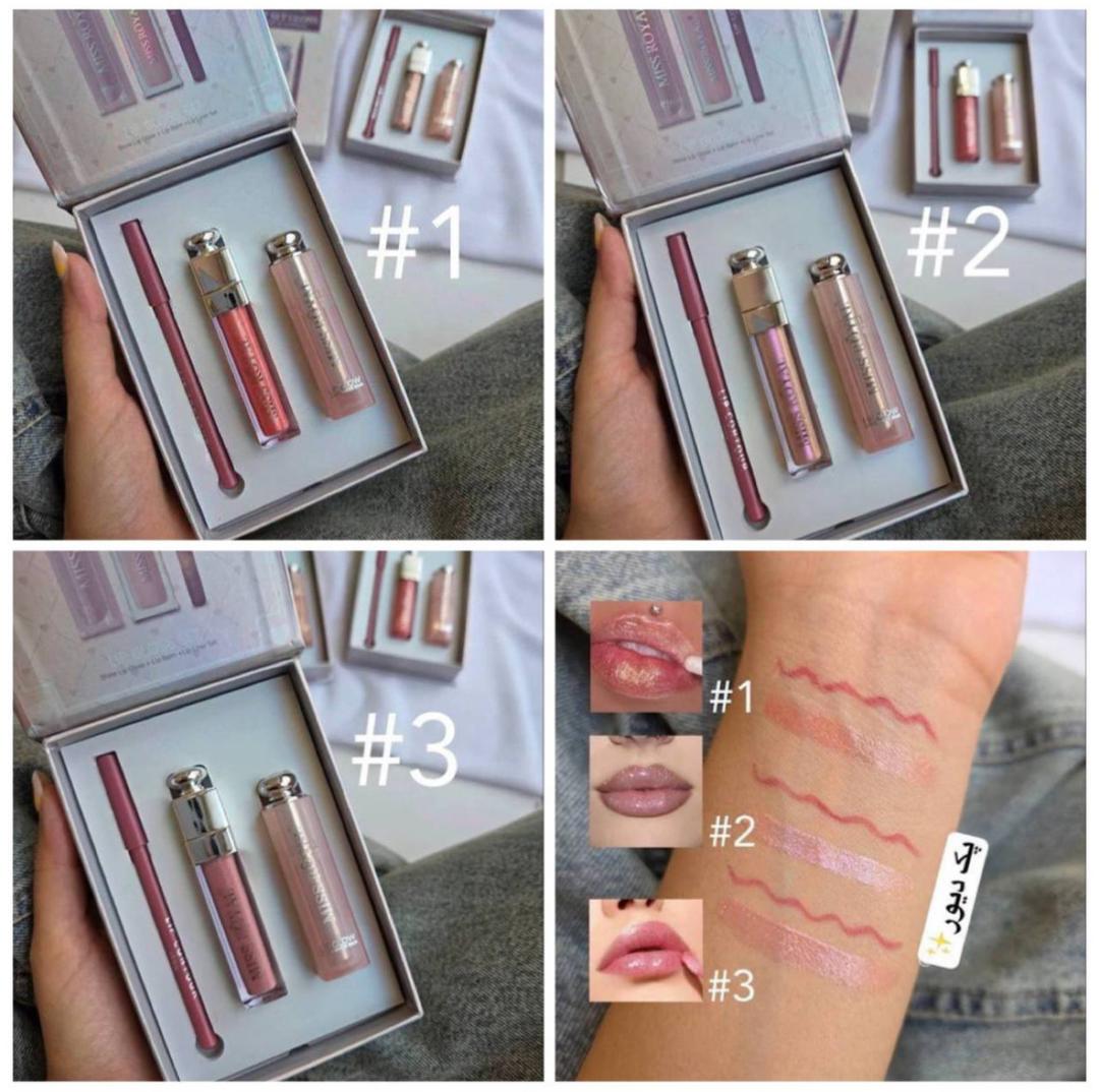 پک سه تیکه بالم لب لیپ گلاس و خط لب پک کادویی