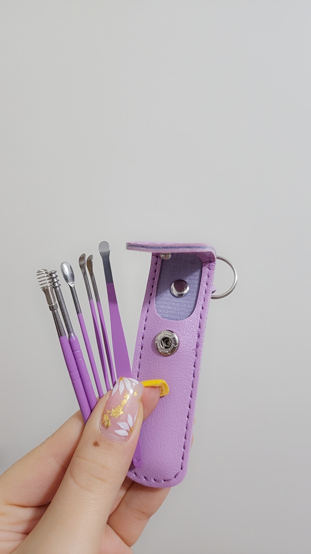 گوش پاک کن فلزی ست پاکسازی گوش 7 تیکه چرمی